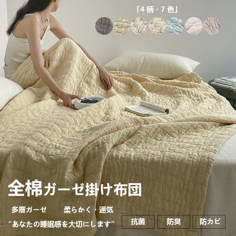 春夏秋新作 掛け布団 睡眠 柔らかい 通気性 全棉 刺しゅう掛け サマークーラーベッドカバー 無地 多層ガーゼ サマークーラー掛け布団 純綿ガーゼ エアコン掛け布団 ギフト 母の日 父の日 | marle