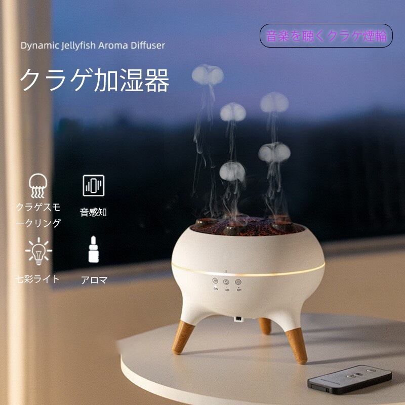クラゲ アロママシン 家庭用 寝室 音感知 静音 七色ライト タイミング 精油 リモコン 自動噴霧 クラゲ発煙リング 加湿器 乾燥対策 お手入れ簡単 乾燥肌 湿度改善 保湿 リビング加湿 大容量 小型