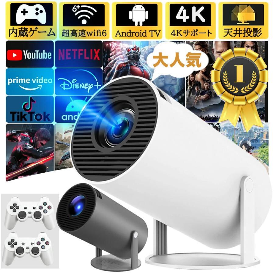 プロジェクター 小型 家庭用 4K対応 天井投影 スマホと繋げる android搭載 210°回転 Netflix/YouTubb Android TV 1080P ホームシアター 5G wi-fi 6 天井 ホームシアター 子供 壁 コンパクト 無線 Bluetooth リモコン付属