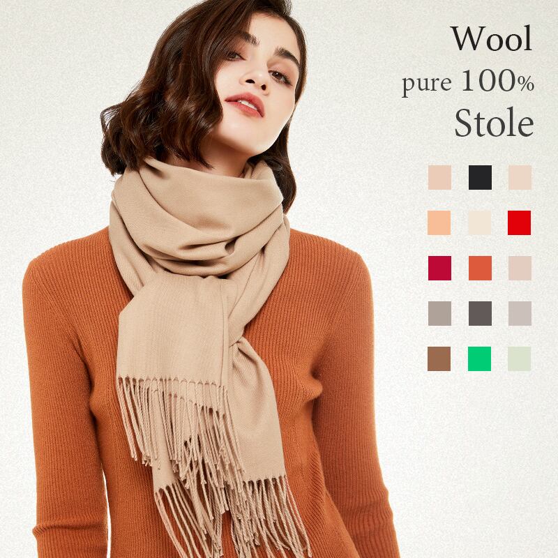ウール 100% 大判 ストール【188cm×32cm】レディース メンズ 大判ストール マフラー 無地 白 黒 赤 ベージュ 秋冬 冬 AW 女性 男性 妻 夫 彼女 祖母 20代 30代 40代 50代 60代 プレゼント 誕生日プレゼント クリスマス
