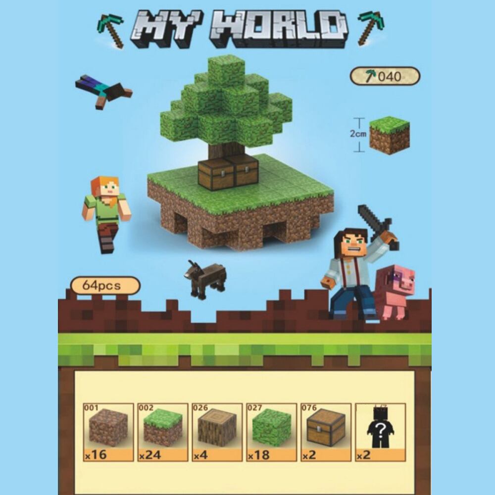 マグネットブロック 磁石ブロック マイクラ マグネットキューブ 天空島 マイクラ 64pcs ミニフィグ2体 ブロック ミニフィグ マイクラ風 diy world おもちゃ 誕生日
