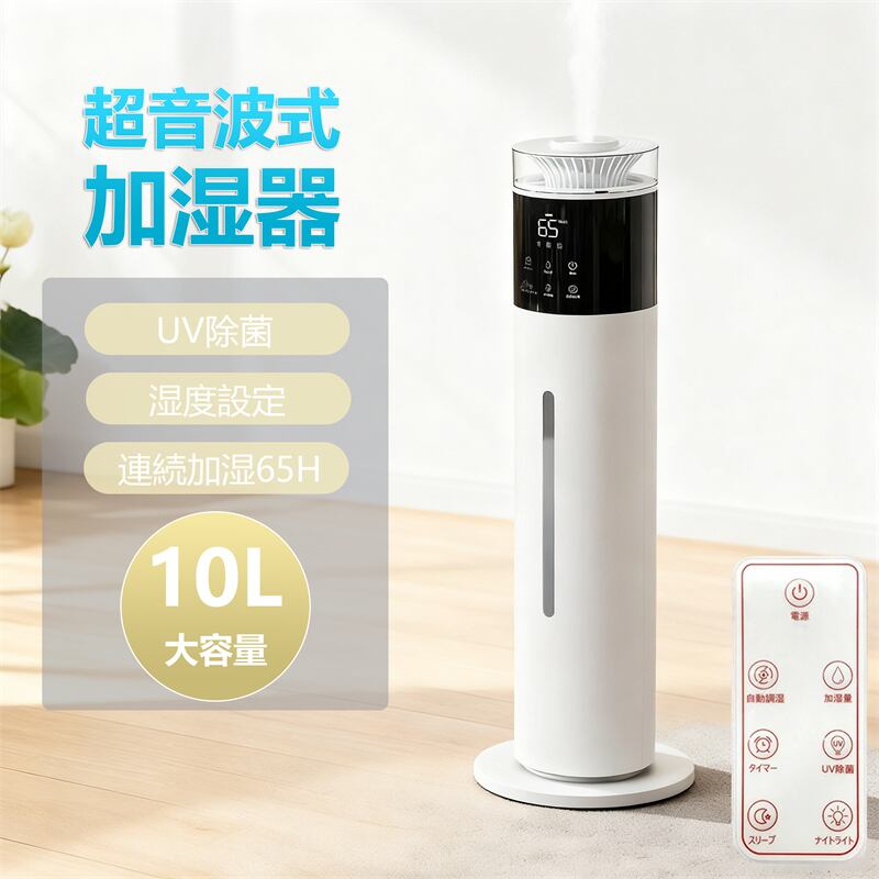 加湿器 大容量10L 3段階ミスト調節 湿度設定 UV除菌 アロマ対応 吹出し口360°回転 65H長時間連続加湿 タイマー 加湿機 スチーム式 超音波式 空気清浄 30畳 自動湿度調節 空焚き防止 上部給水業務用 お手入れ簡単 人気 事務所 寝室 2年保証 静音 省エネ PSE認証