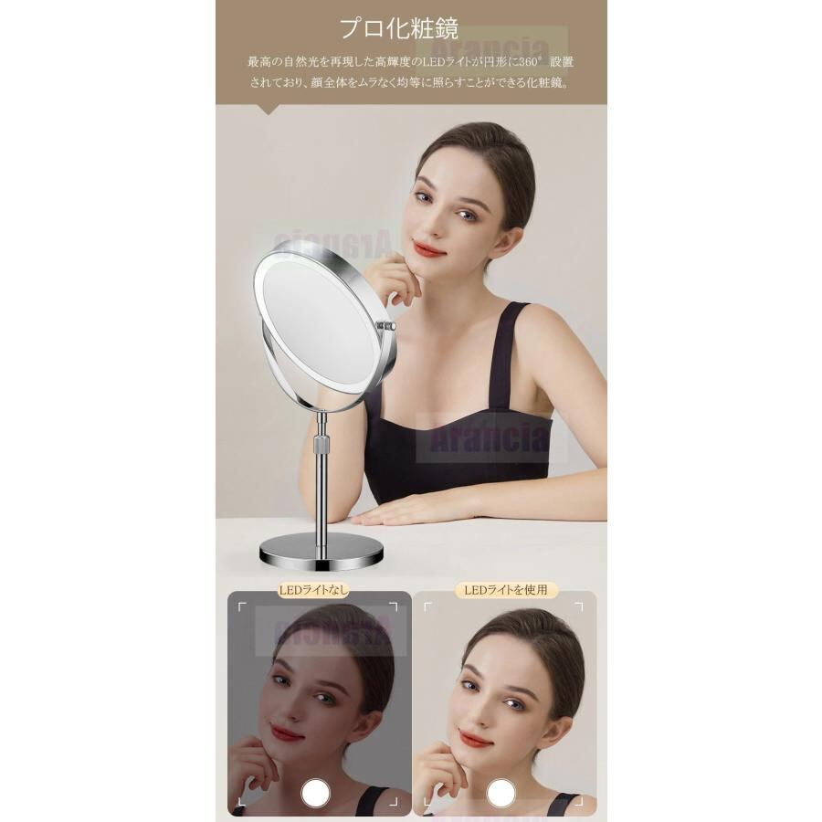 卓上ミラー 高さ調整 女優 ミラー 拡大 鏡 付き 両面ミラー 3倍5倍10倍拡大鏡 女優ミラー 卓上 丸 おしゃれ 卓上 鏡 かわいい 円形ミラー 卓上ミラー ライト付き