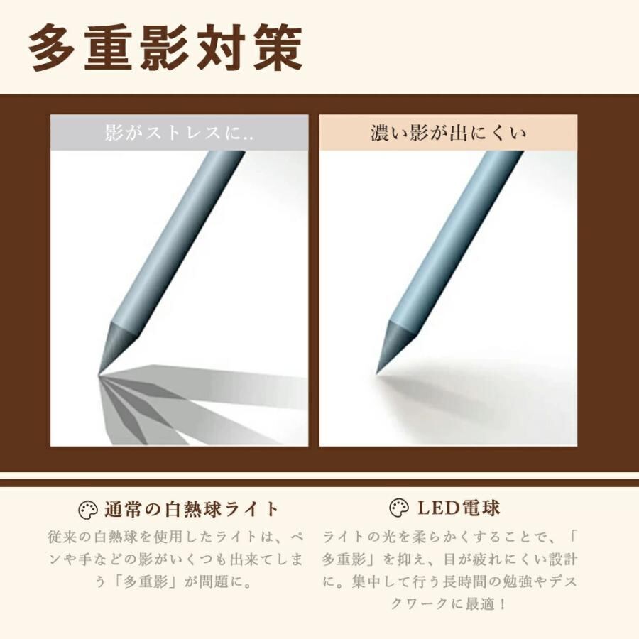 デスクライト LED クランプ式 電気スタンド 卓上 調光 調色 3灯 70cm シートセンサーです ワイド 目に優しい 子供 読書 勉強 PC 卓上ライト クランプ式 2026