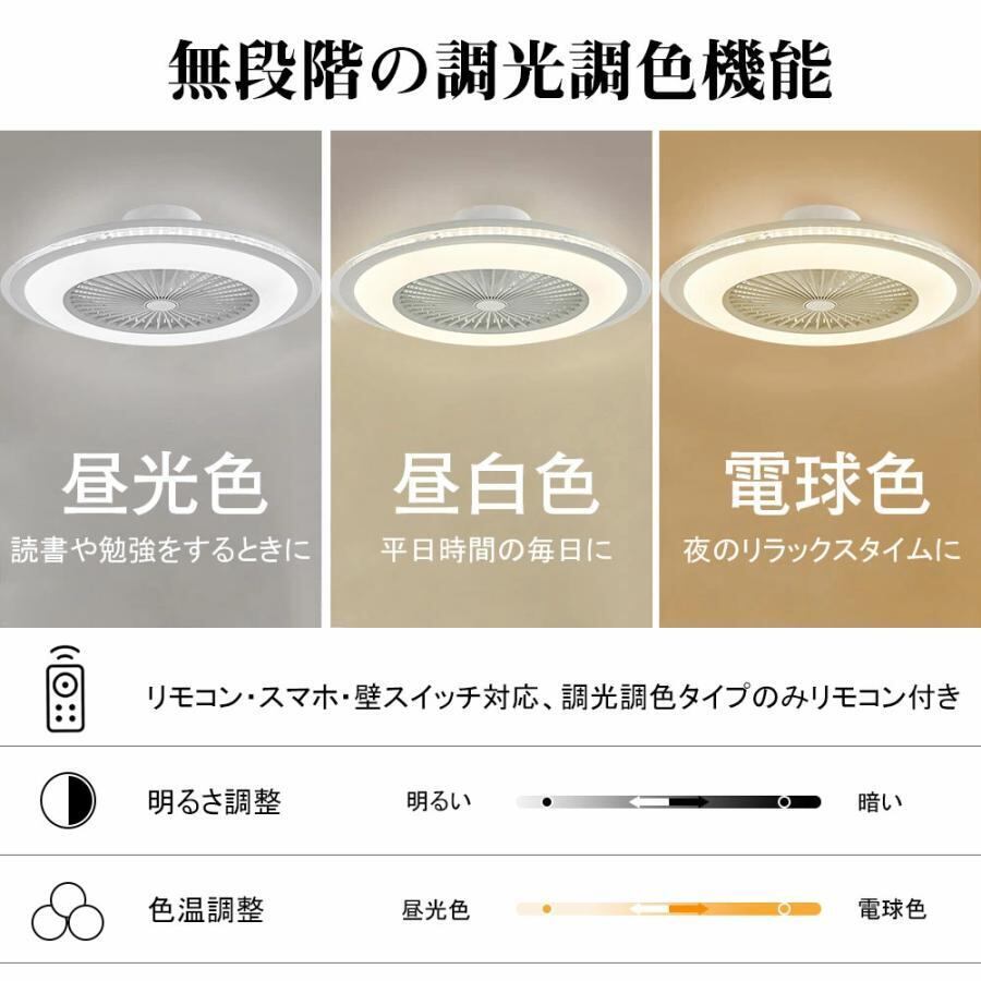 シーリングファン シーリングファンライト LED 照明器具 6畳 12畳 DCモーター サーキュレーター 調光調色 シーリングライト 北欧風 dcモーター 省エネ 節電
