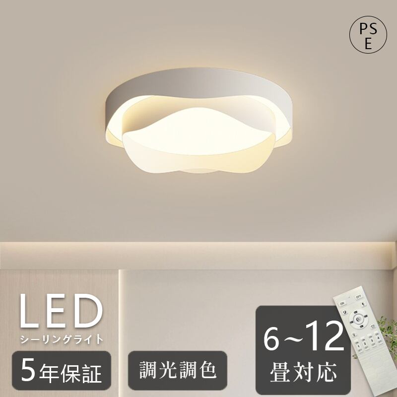 【五年保証】 シーリングライト おしゃれ 北欧 LED 照明器具 スマホ 調光調色 明るい 寝室 リビング 間接照明 和室 洋室 天井照明 丸型 リモコン タイマー付き 6畳 8畳 10畳 12畳 工事不要 省エネ おすすめ